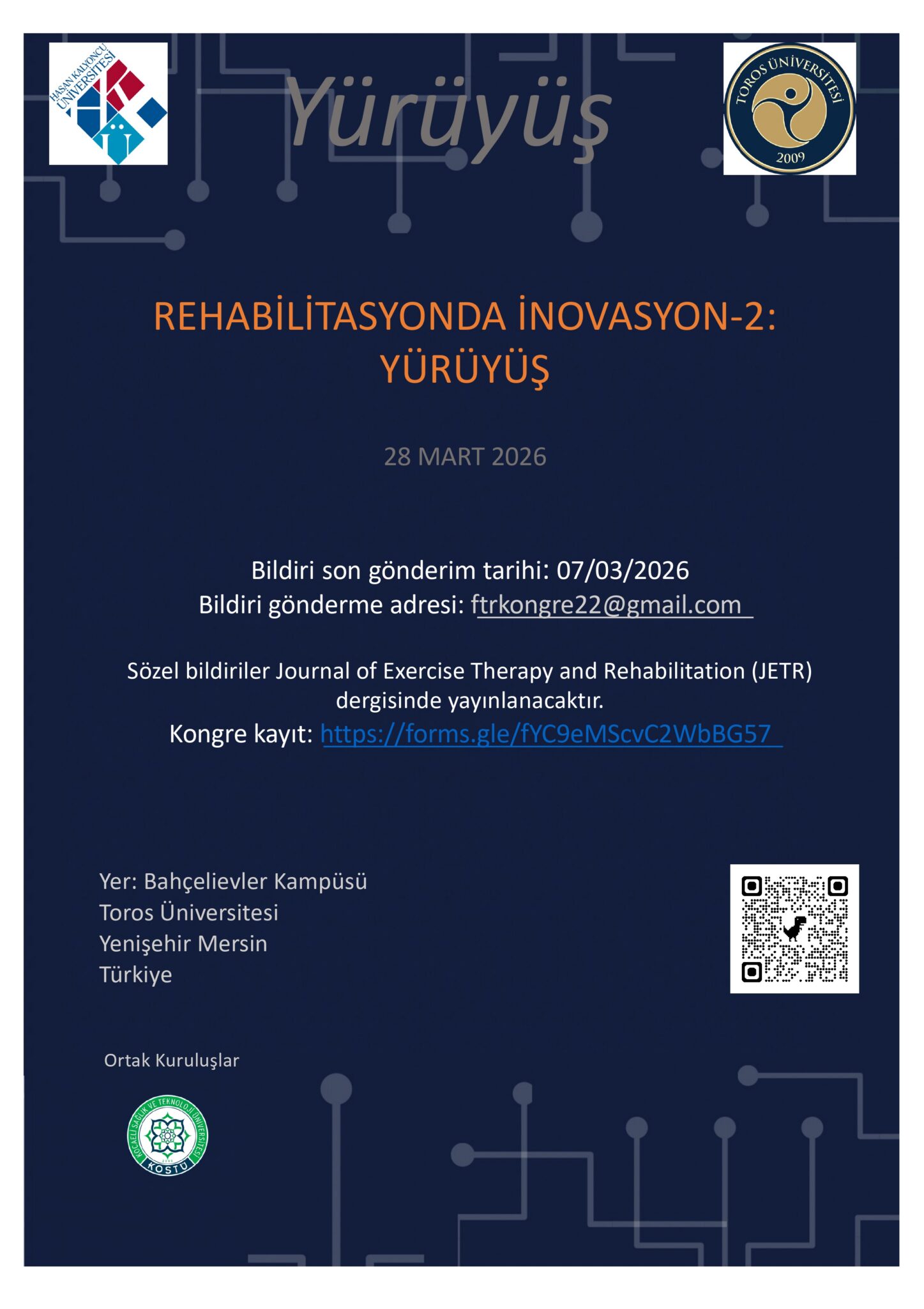 Etkinlik kapsamında ayrıca sözel bildiri sunumları yapılacak olup, kabul edilen bildiriler Journal of Exercise Therapy and Rehabilitation (JETR) dergisinde yayımlanacaktır. Bildiri son gönderim tarihi 28 Şubat 2026’dır.