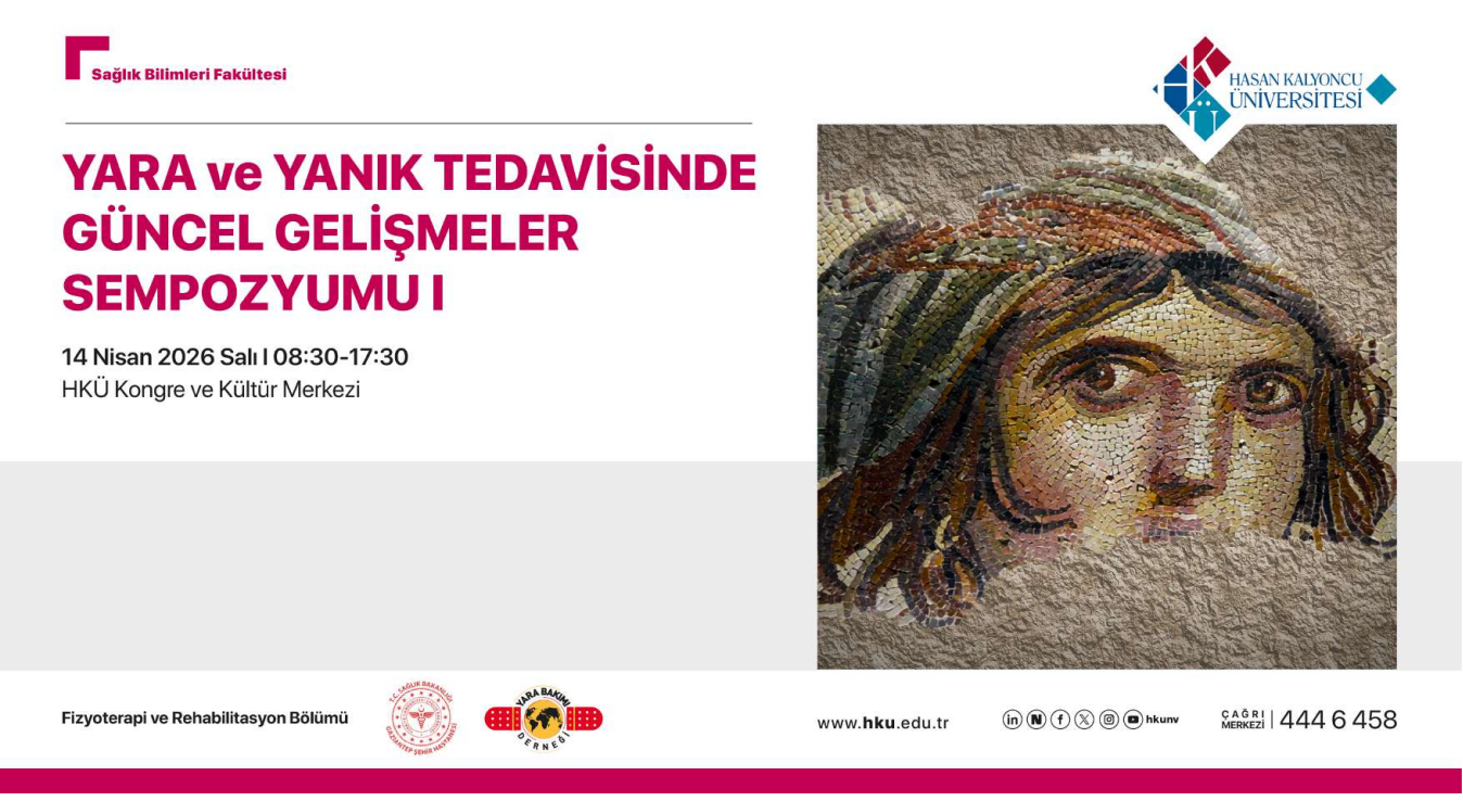 Hasan Kalyoncu Üniversitesi ev sahipliğinde, Gaziantep Şehir Hastanesi ve Yara Bakım ve Doku Onarımı Derneği’nin katkılarıyla düzenlenecek olan ” Yara ve Yanık Tedavisinde Güncel Gelişmeler Sempozyumu-I ” 14 Nisan 2026 tarihinde Hasan Kalyoncu Üniversitesi Kongre ve Kültür Merkezi’nde gerçekleştirilecektir.